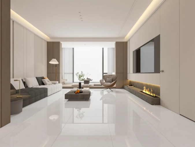 它是對通體大理石工藝的一次靜默升級,優化坯體白度,使磚面色彩更為純粹、紋理更具層次。98°全拋釉面,光感如絲綢般細膩,